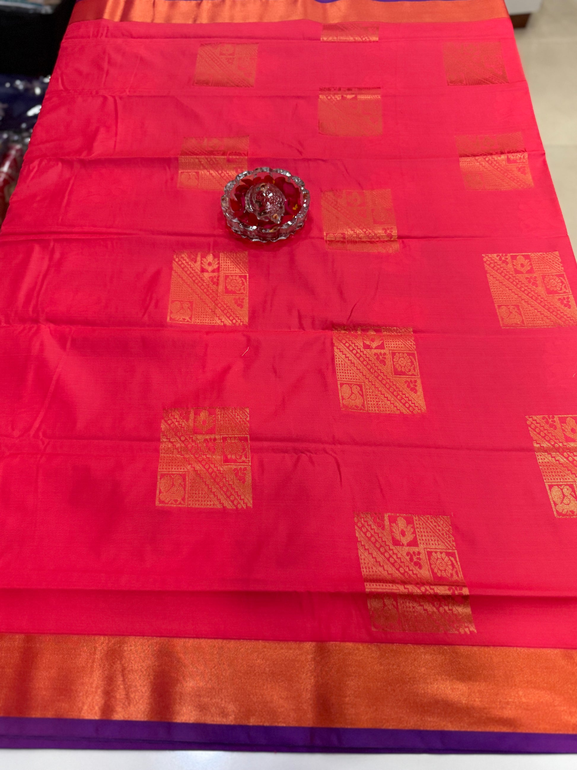 Work/Design: Intricate zari weaving with traditional motifs inspired by South Indian heritage.
