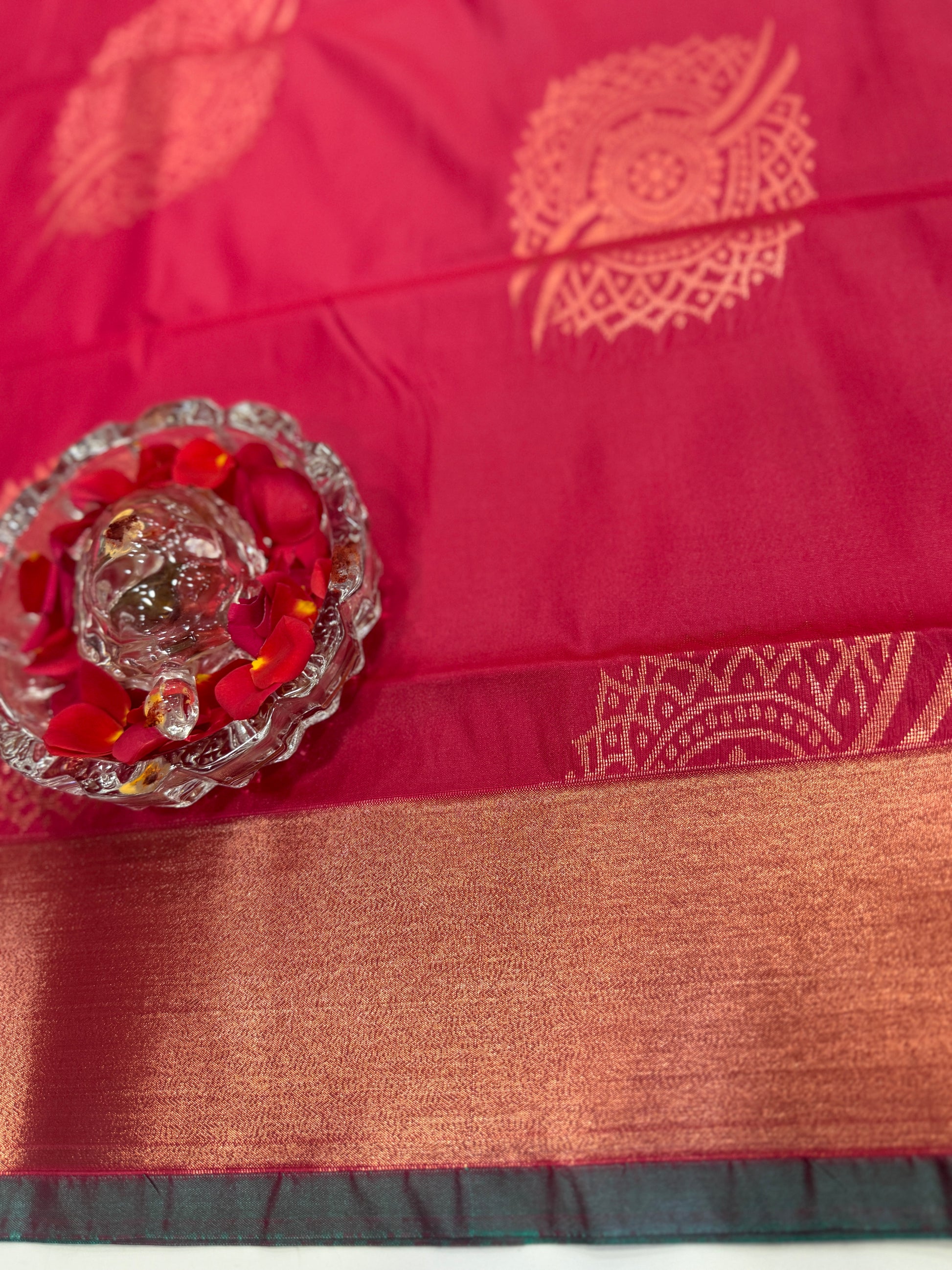 Border & Pallu: Richly woven border with a radiant zari pallu.
