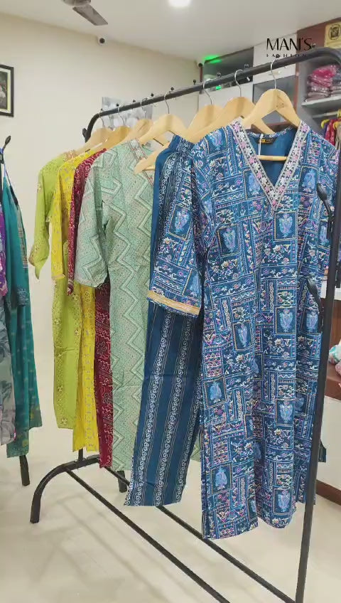 Elevate your festive wardrobe with this elegant straight-cut kurti set, crafted from soft heavy rayon and beautifully adorned with embroidery and sequin work. Paired with a coordinated pant and fancy dupatta, this ensemble offers both tradition and comfort in one graceful silhouette.