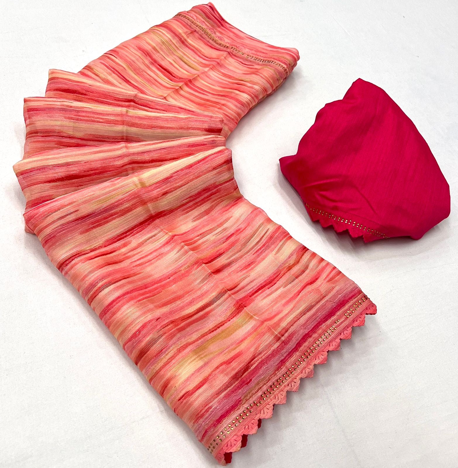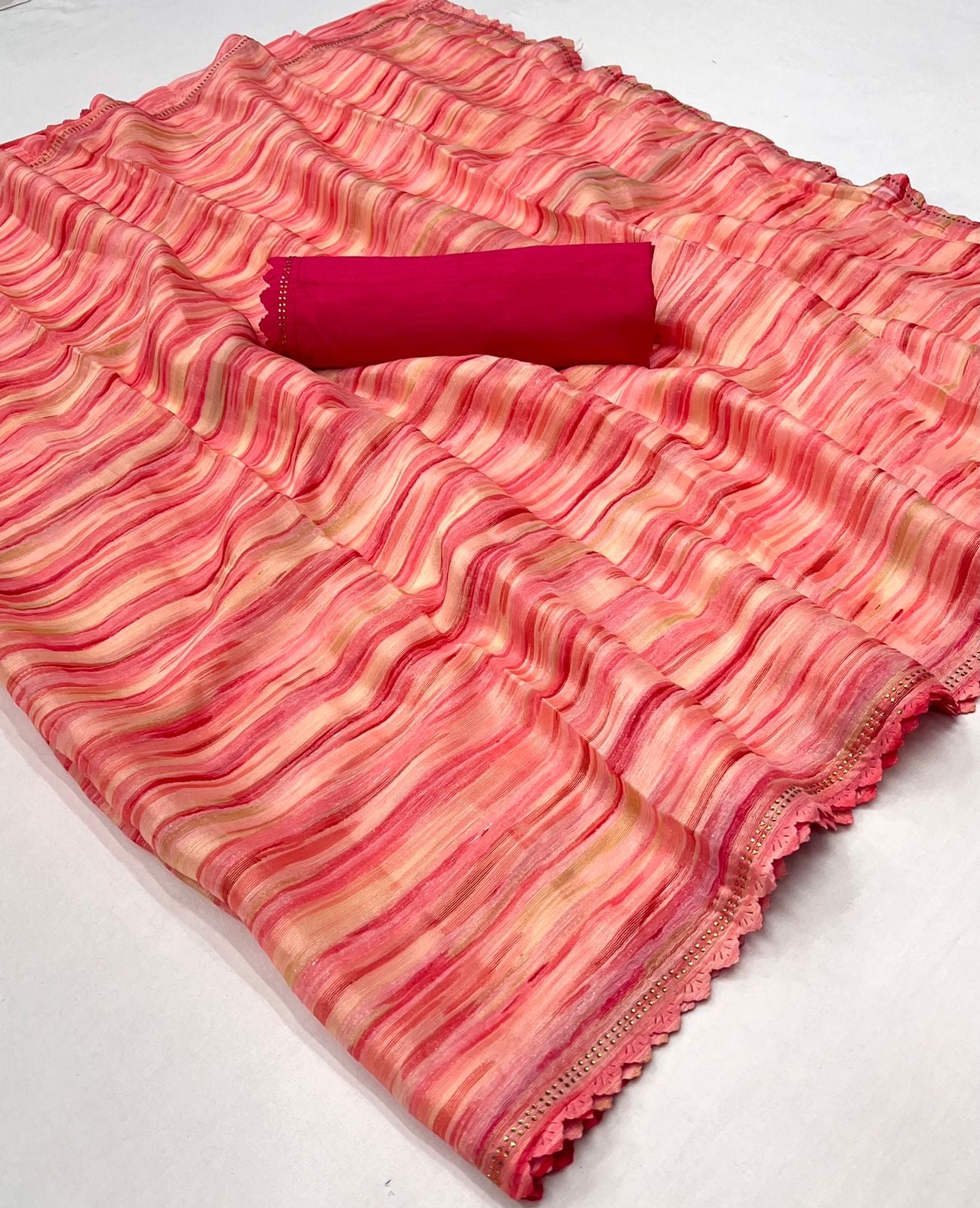 Embrace the charm and elegance of this beautifully crafted saree, designed to make you shine.