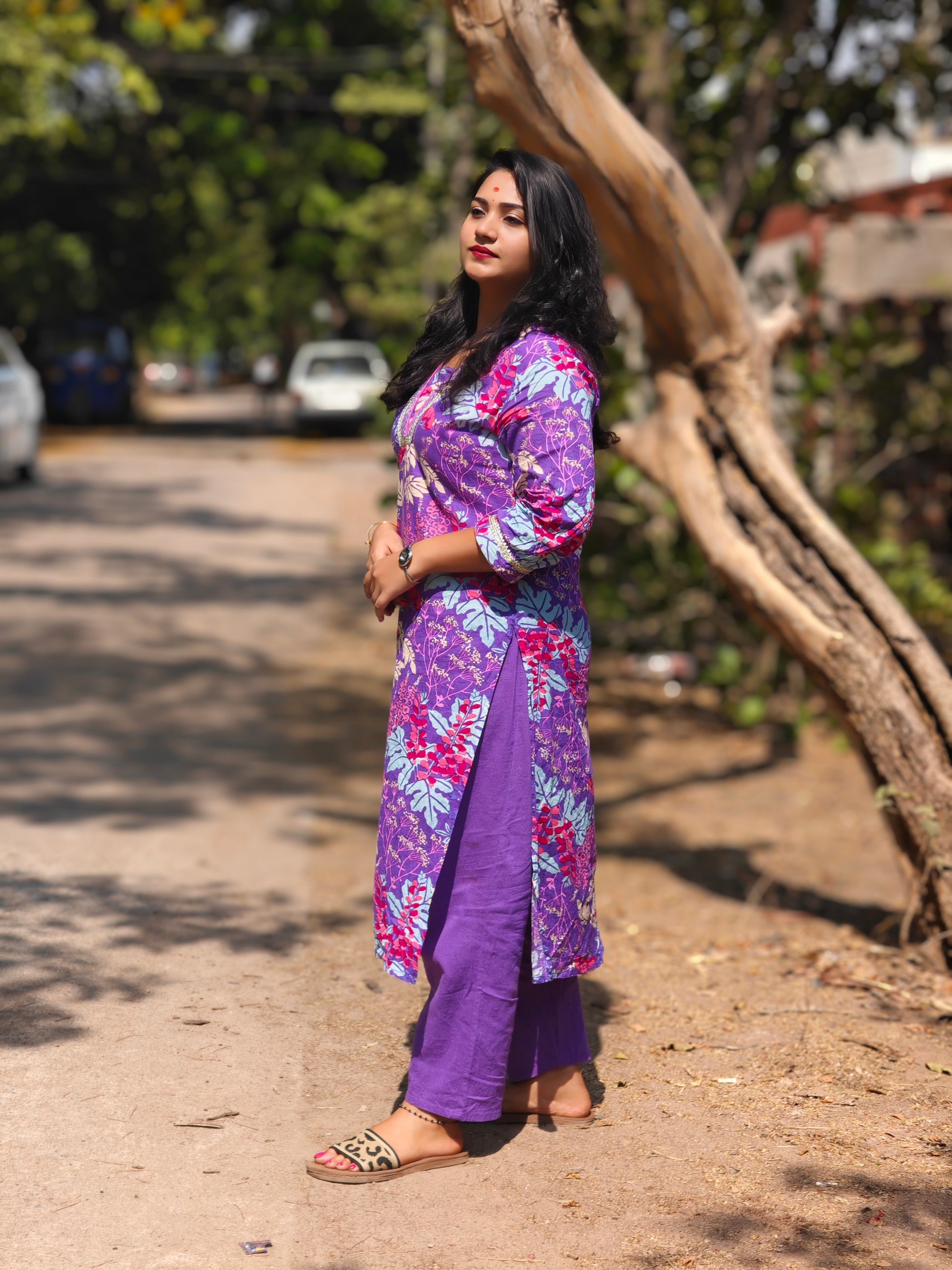Designed for effortless summer elegance, this cotton kurti pant set for women features a beautiful printed kurti with a flattering V-neck and delicate jari work on the chest yoke. Crafted from breathable 60*60 cotton fabric, it ensures comfort while maintaining a refined silhouette. The accompanying straight-fit pants provide ease of movement, making it an ideal ensemble for daily wear, casual outings, or festive day functions. With its tailored fit and seasonal colors, this fully stitched set brings both grace and functionality to your ethnic wardrobe.