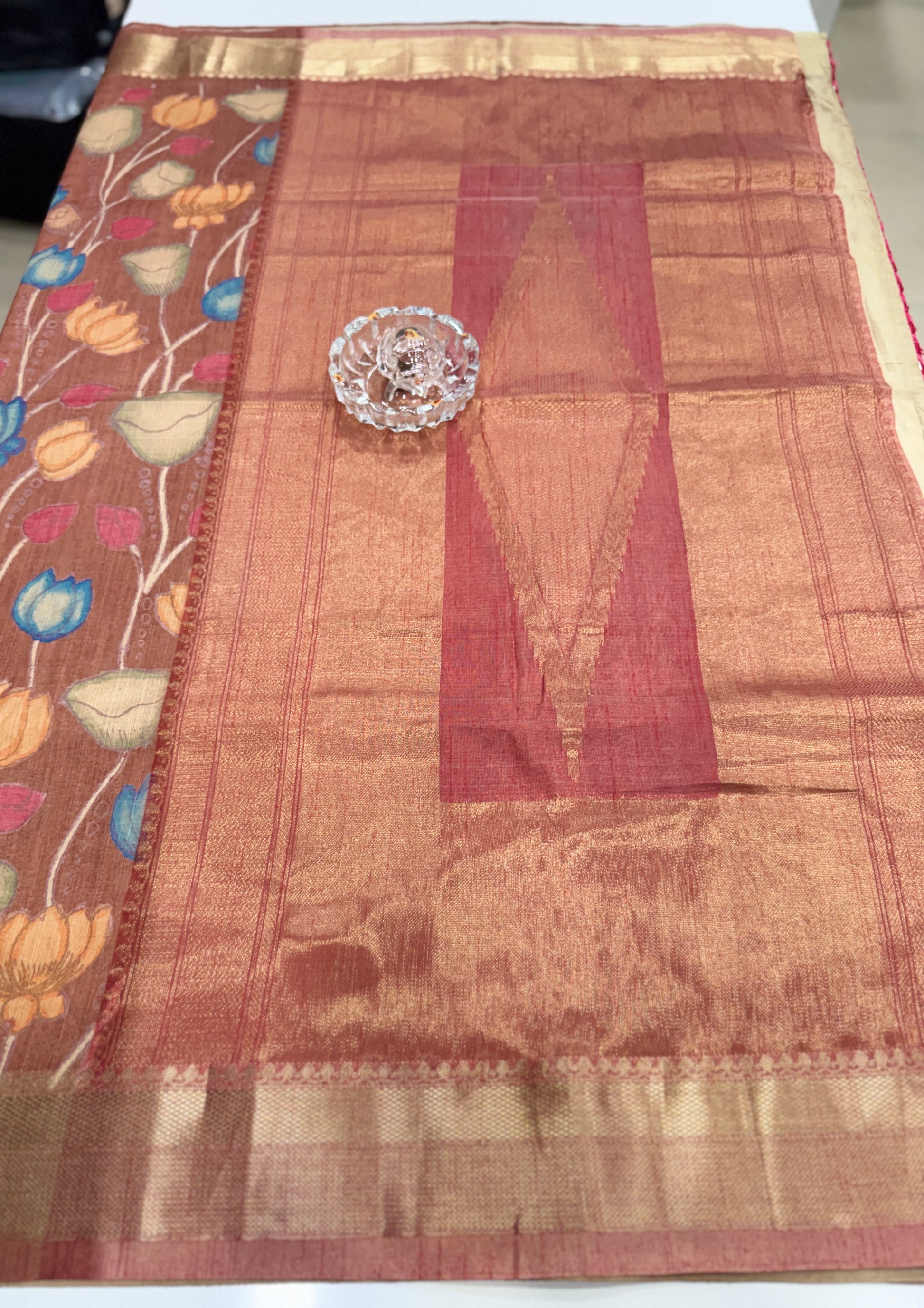 Tussar Art silk saree with handloom weaving and floral pattern for women