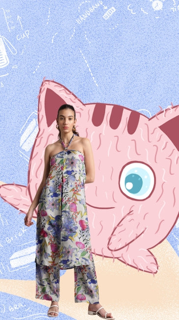 Step into summer with this breezy and contemporary floral co-ord set for women, designed for effortless elegance. Crafted from a soft viscose blend fabric, this sleeveless halter-neck top features a back tie-up for a modern silhouette, paired with relaxed-fit matching pants. Perfect for vacations, resort wear, or brunch outings, this fully stitched ensemble brings together bold botanical prints with elevated comfort.