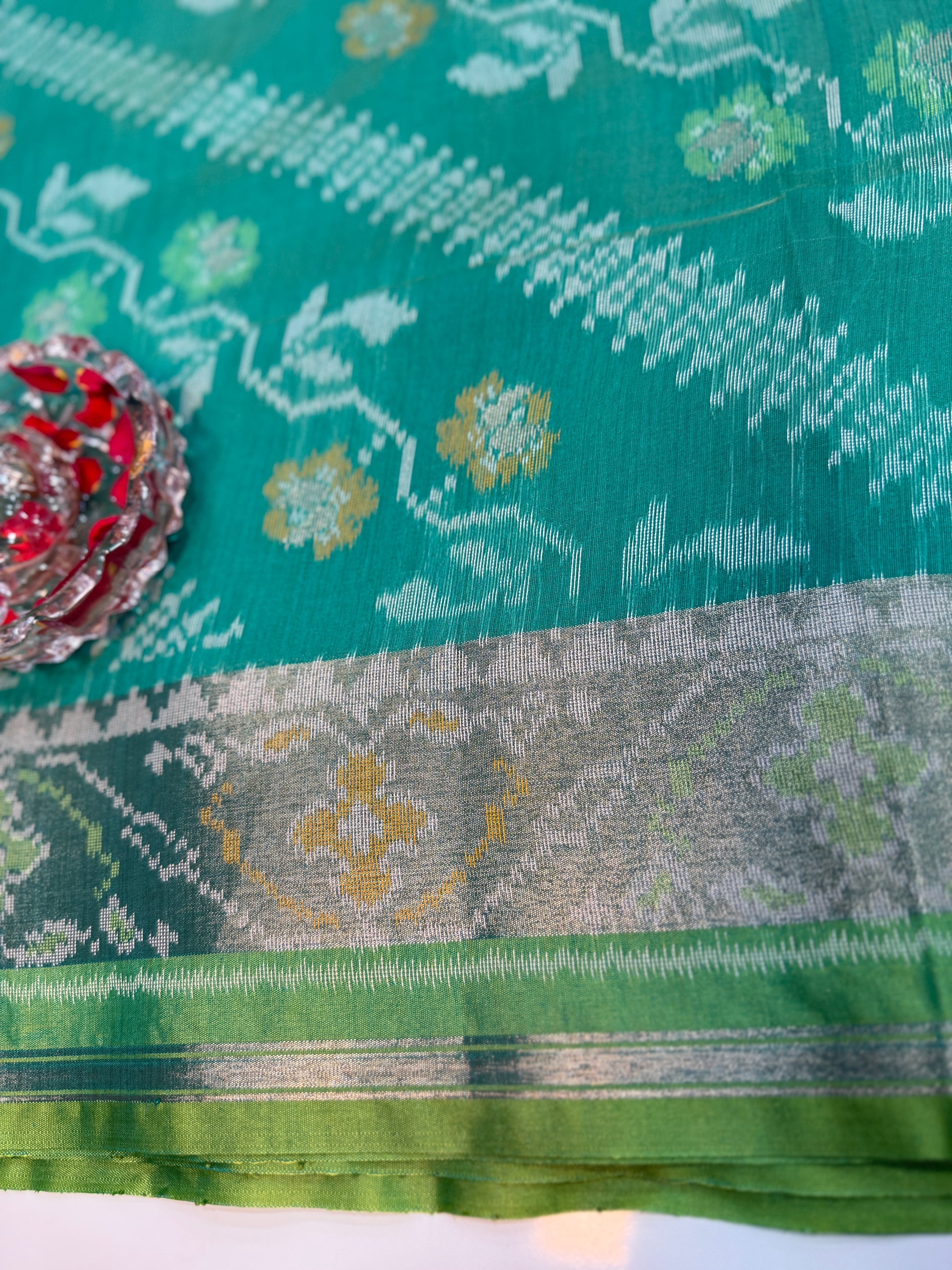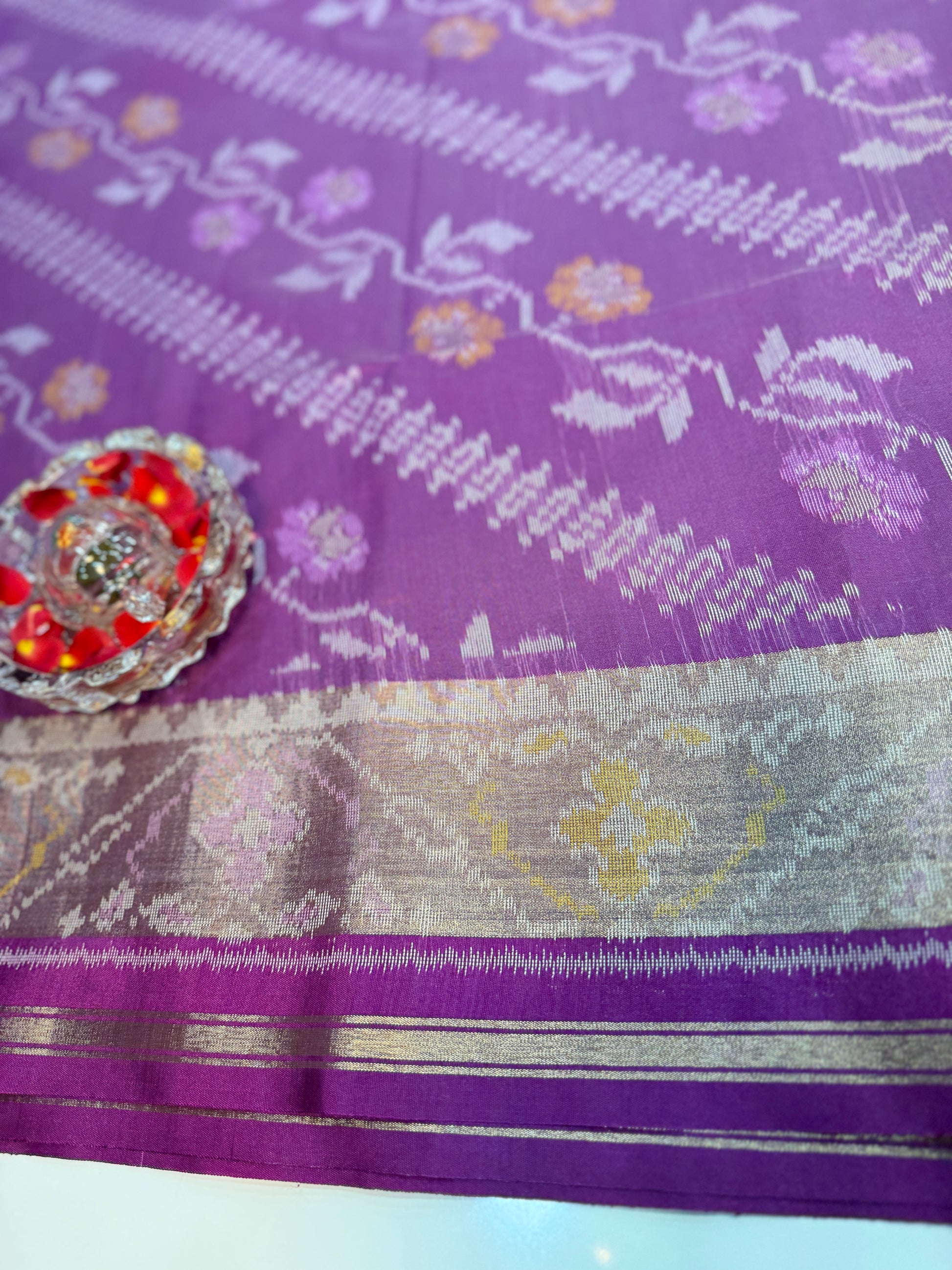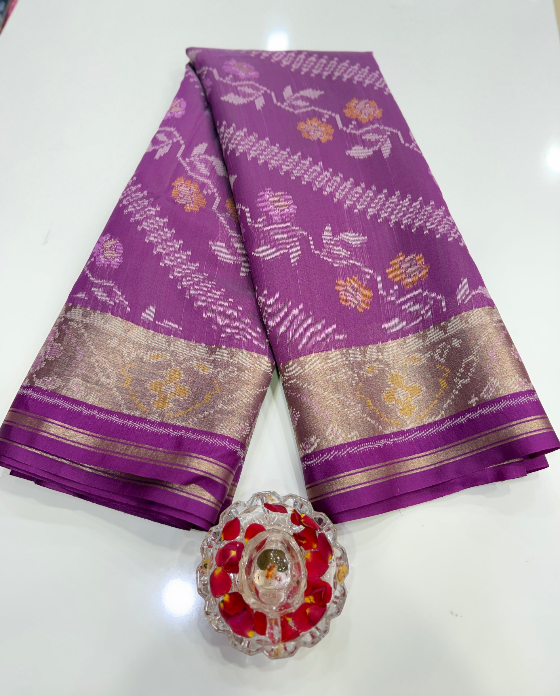 This saree is ideal for customers who want an ikat-inspired pattern with a clean, wearable finish for office ethnic days, family gatherings, temple visits, and gifting.