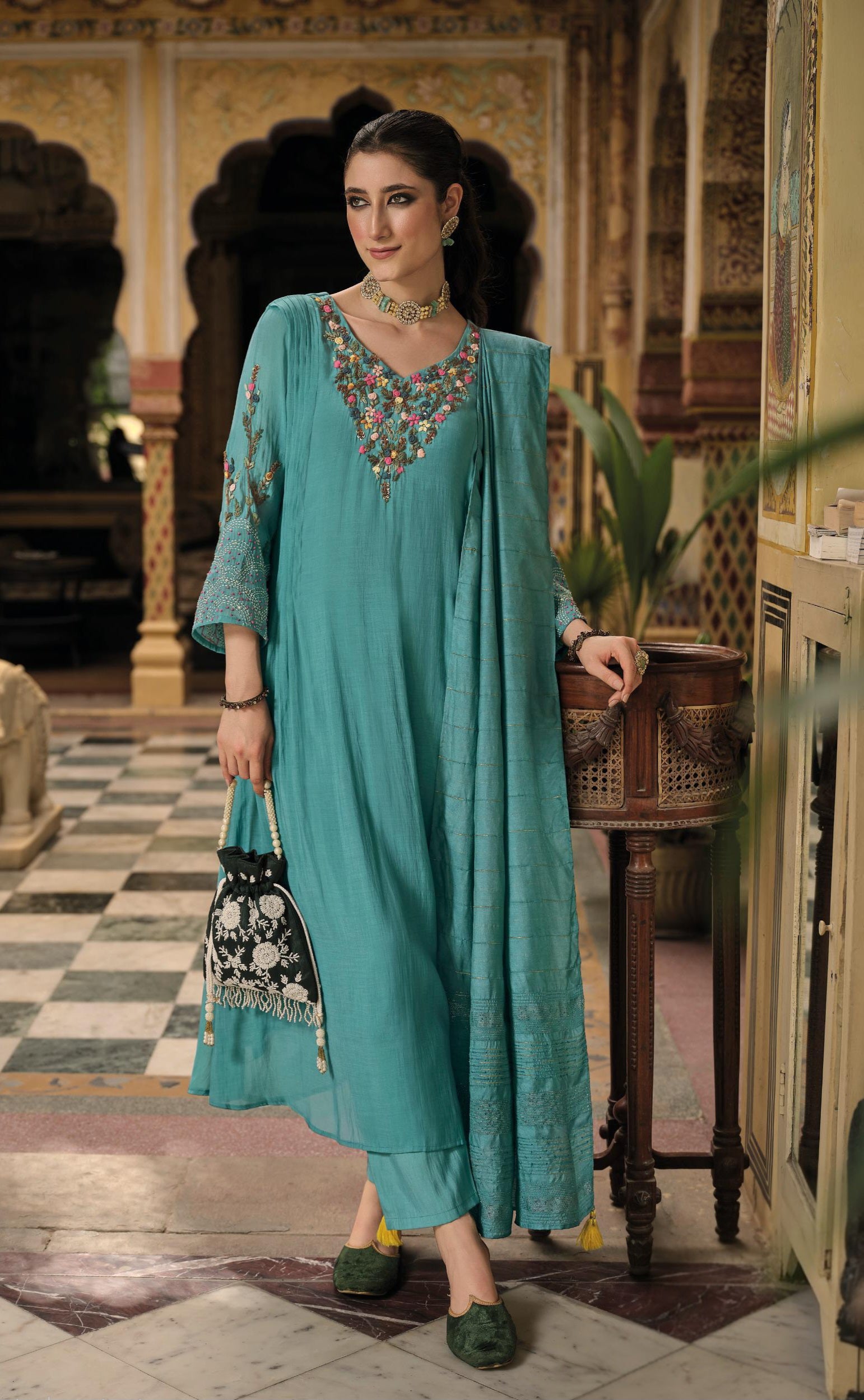 Work type: designer kantha work + handwork + accessory detailing